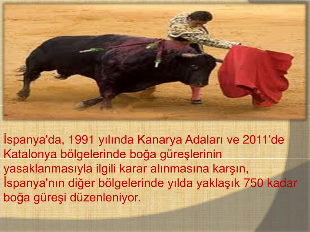 İspanya'da, 1991 yılında Kanarya Adaları ve 2011'de Katalonya bölgelerinde boğa güreşlerinin yasaklanmasıyla ilgili karar alınmasına karşın, İspanya'nın diğer bölgelerinde yılda yaklaşık 750 kadar boğa güreşi düzenleniyor.