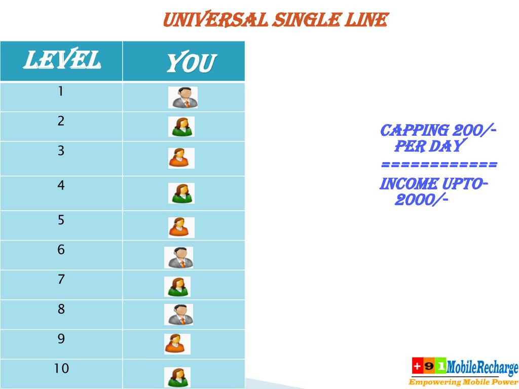 INVESTMENT 1000/- • 350/- RECHARGE PORTAL (one time) • 650/-TALK TIME (65/- PER day) • SINGLE -LINE UNIVERSAL INCOME • 6 UNIQUE AUTO POOL INCOME • Binary income