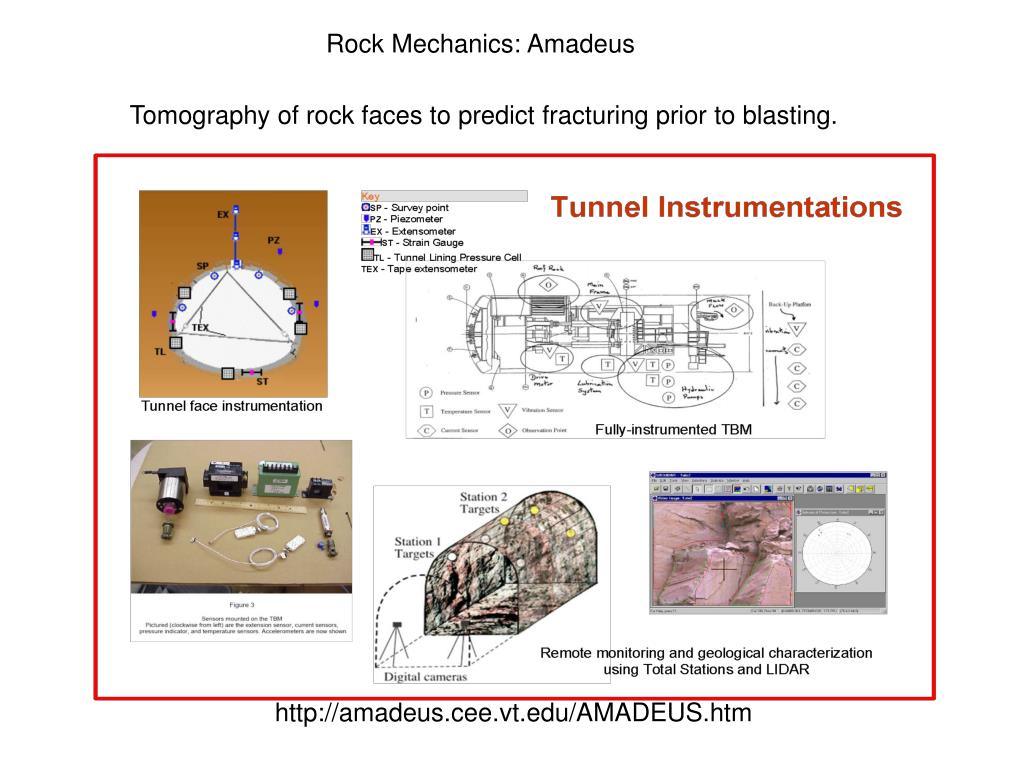 Rock Mechanics: Amadeus Tomography of rock faces to predict fracturing prior to blasting. http://amadeus.cee.vt.edu/AMADEUS.htm