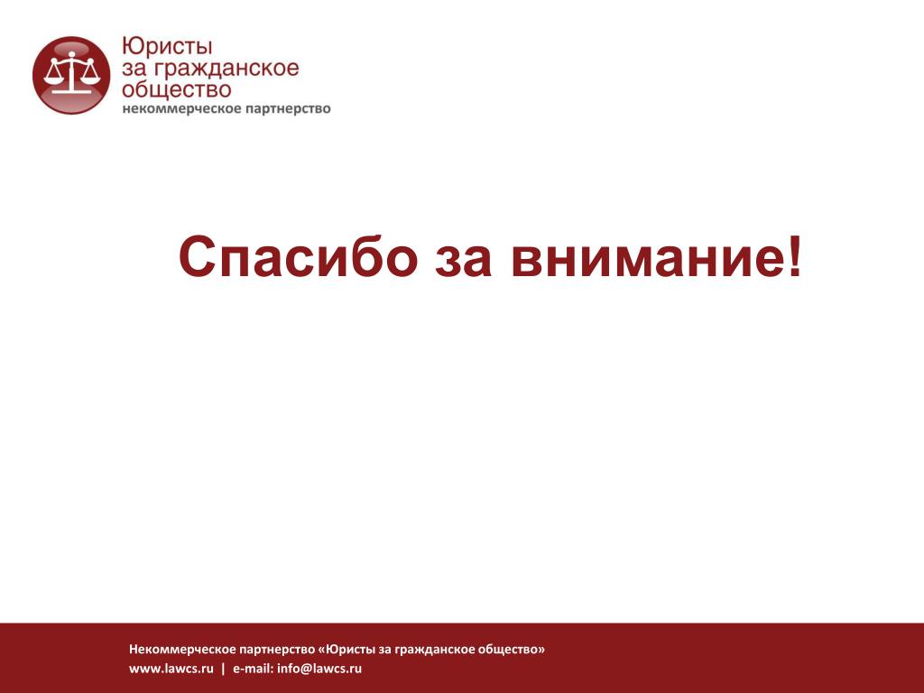 Спасибо за внимание! Некоммерческое партнерство «Юристы за гражданское общество» www.lawcs.ru | e-mail: info@lawcs.ru
