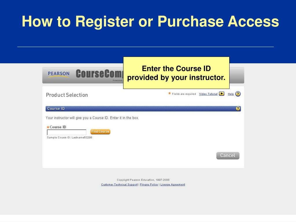 How to Register or Purchase Access Enter the Course ID provided by your instructor.