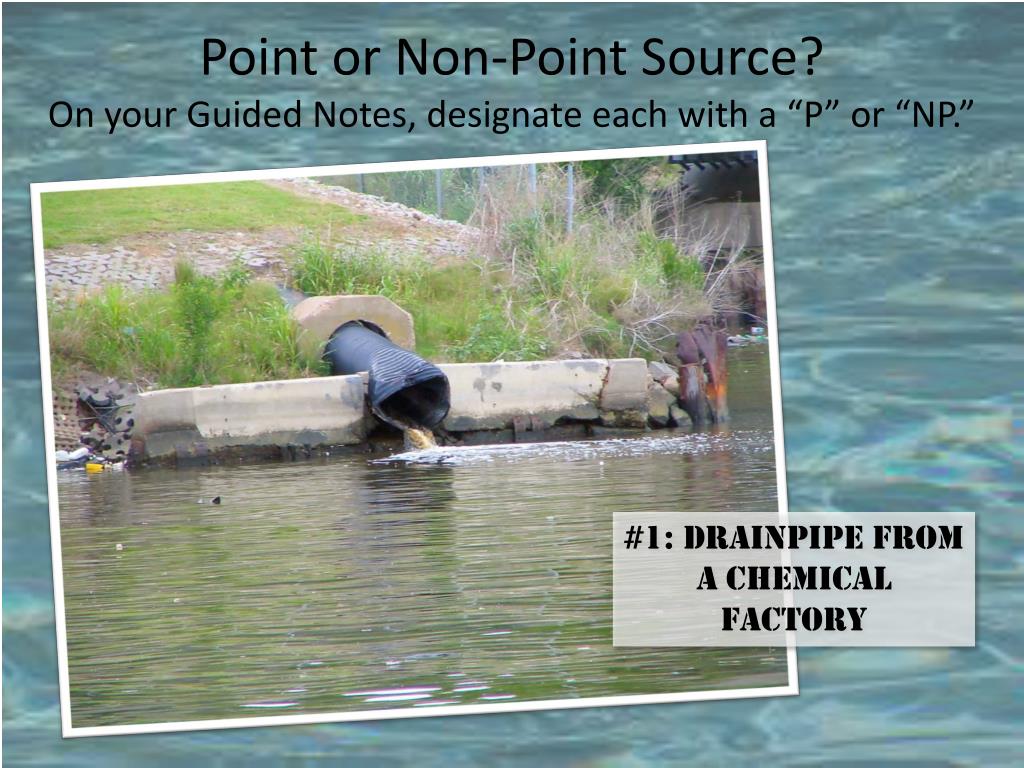 Point or Non-Point Source?On your Guided Notes, designate each with a “P” or “NP.” #1: Drainpipe from a chemical factory