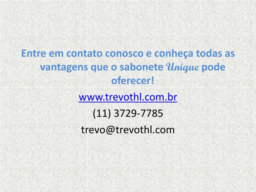 Entre em contato conosco e conheça todas as vantagens que o sabonete Unique pode oferecer! www.trevothl.com.br (11) 3729-7785 trevo@trevothl.com
