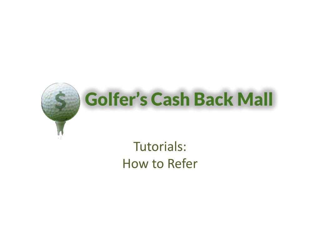Tutorials: How to Refer. Welcome. This tutorial will take you through the steps to invite your friends and family to take advantage of cash back shopping. How to Refer. 1 - Sign In Go to golfers.freecashbackmall.com and sign-in with your username and password. How to Refer.