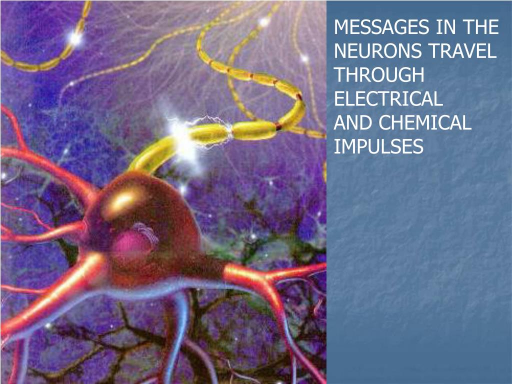 MESSAGES IN THE NEURONS TRAVEL THROUGH ELECTRICAL AND CHEMICAL IMPULSES