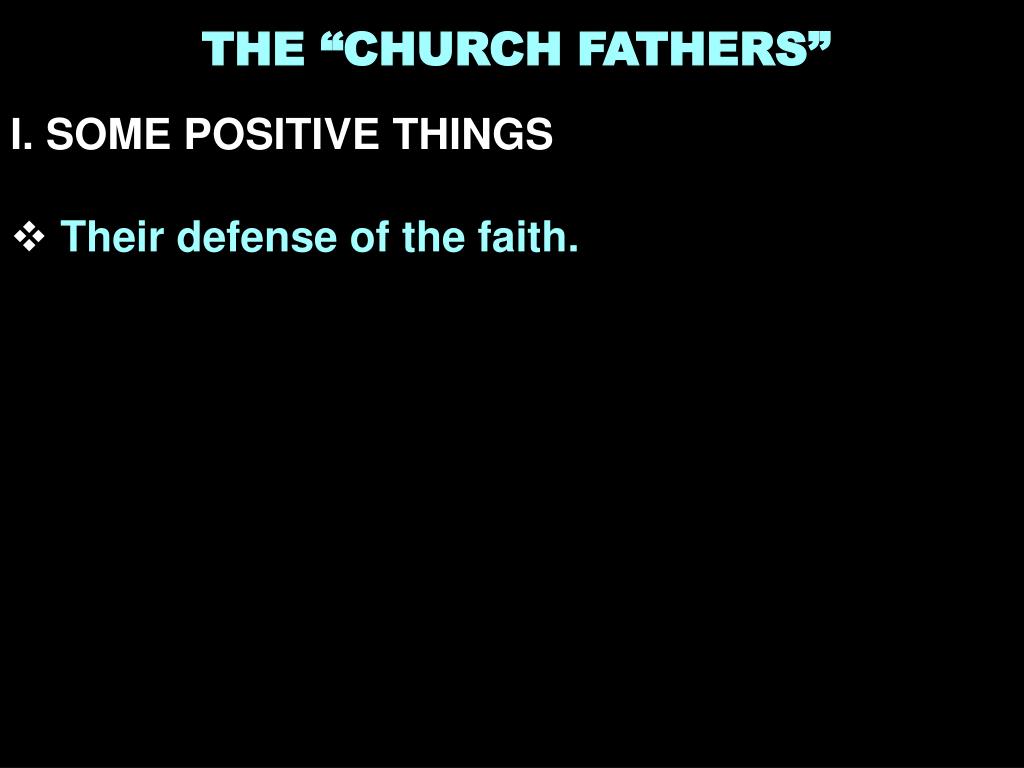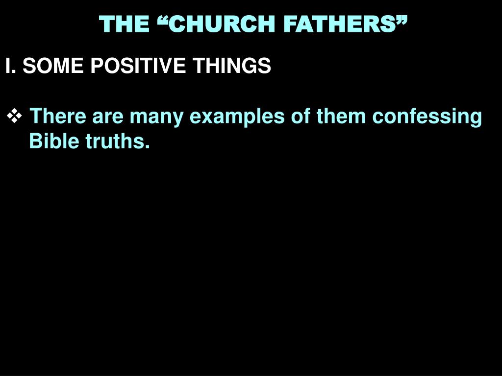 THE “CHURCH FATHERS” • I. SOME POSITIVE THINGS • There are many examples of them confessing Bible truths.