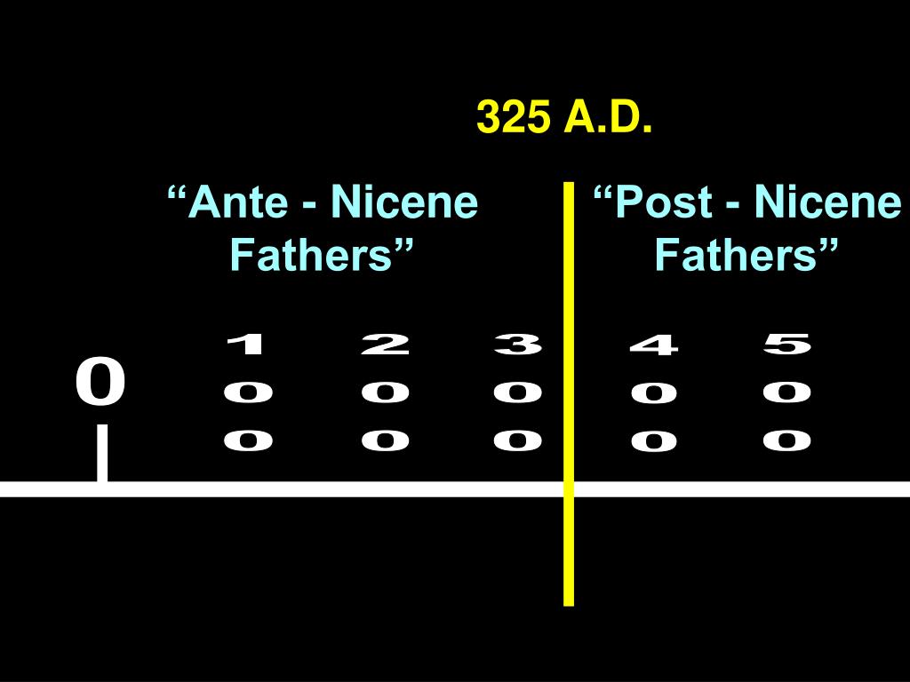 325 A.D. “Ante - NiceneFathers” “Post - NiceneFathers” 0 100 200 300 500 400