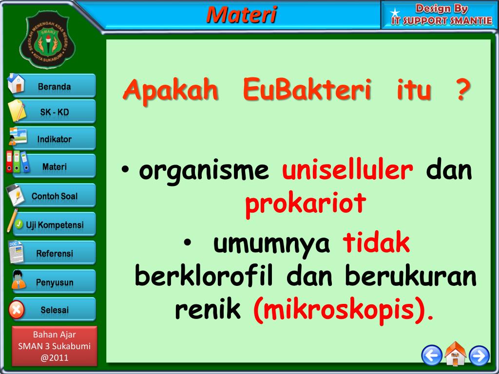 Materi ApakahEuBakteriitu? • organismeunisellulerdanprokariot • umumnyatidakberklorofildanberukuranrenik(mikroskopis).