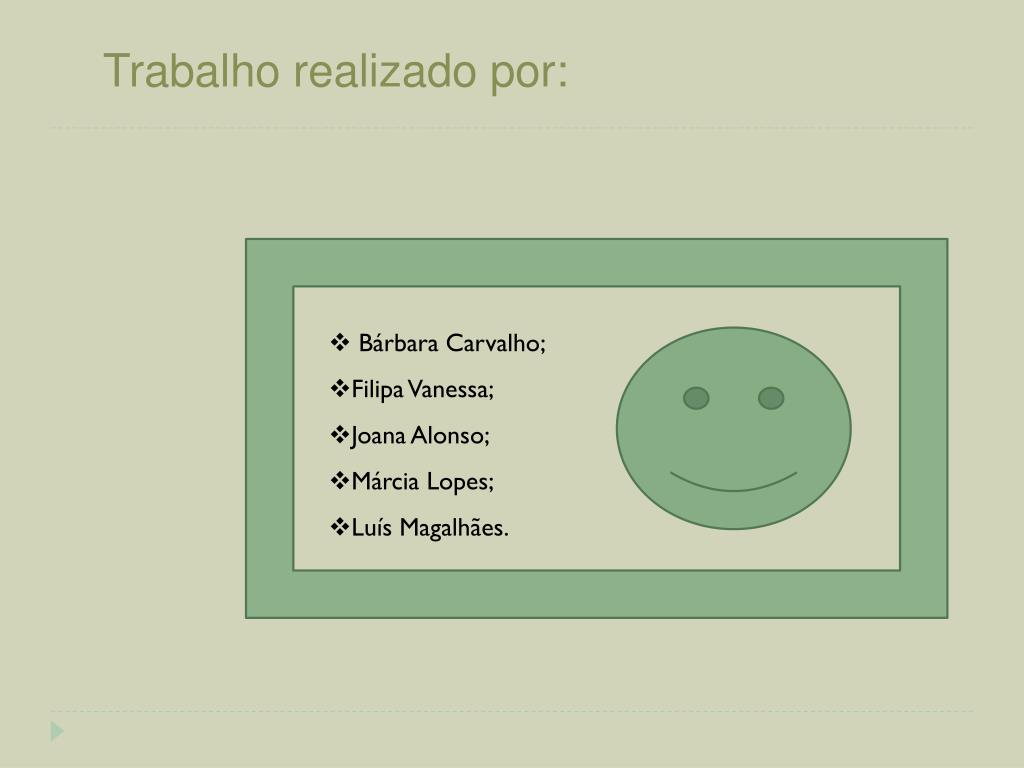 Trabalho realizado por: • Bárbara Carvalho; • Filipa Vanessa; • Joana Alonso; • Márcia Lopes; • Luís Magalhães.