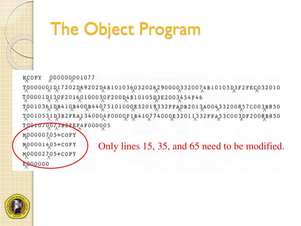 The Object Program Only lines 15, 35, and 65 need to be modified.
