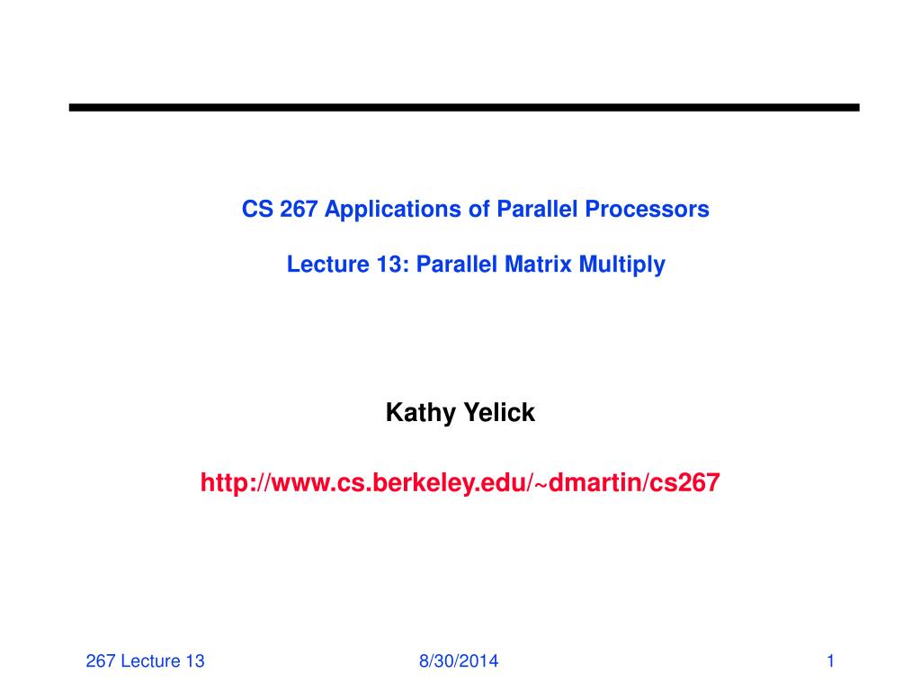 CS 267 Applications of Parallel ProcessorsLecture 13: Parallel Matrix Multiply Kathy Yelick http://www.cs.berkeley.edu/~dmartin/cs267