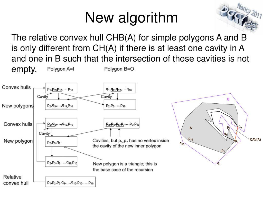 New algorithm The relative convex hull CHB(A) for simple polygons A and B is only different from CH(A) if there is at least one cavity in A and one in B such that the intersection of those cavities is not empty.