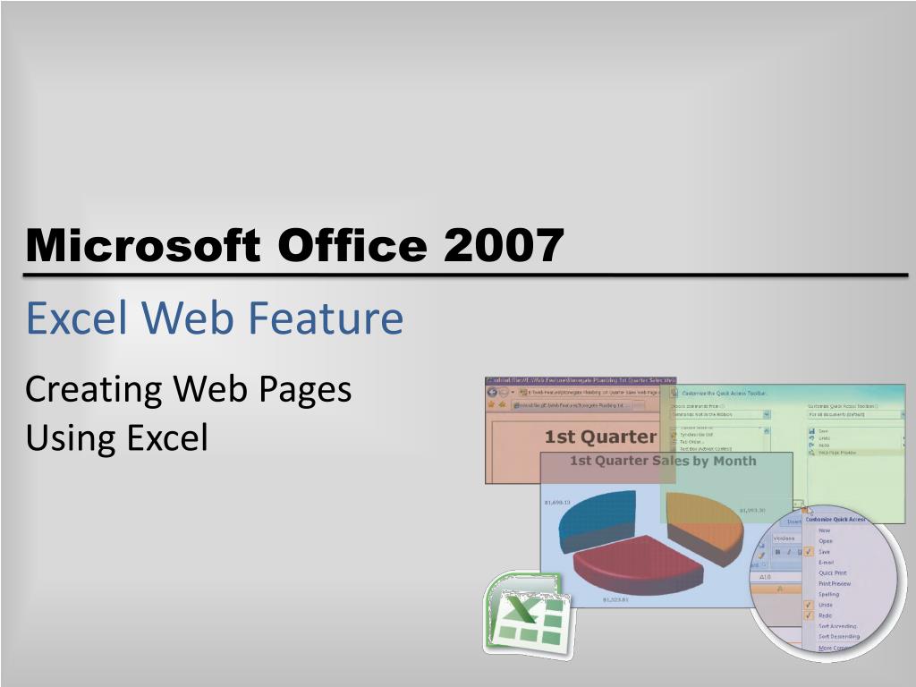 Excel Web Feature. Creating Web Pages Using Excel. Objectives. Customize the Quick Access Toolbar Publish a worksheet and chart as a Web page Display Web pages published in Excel in a browser Complete file management tasks within Excel. Adding a Button to the Quick Access Toolbar.