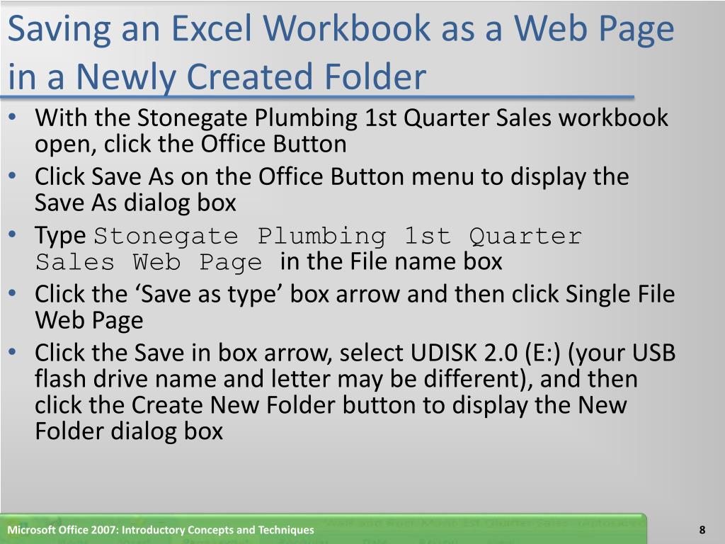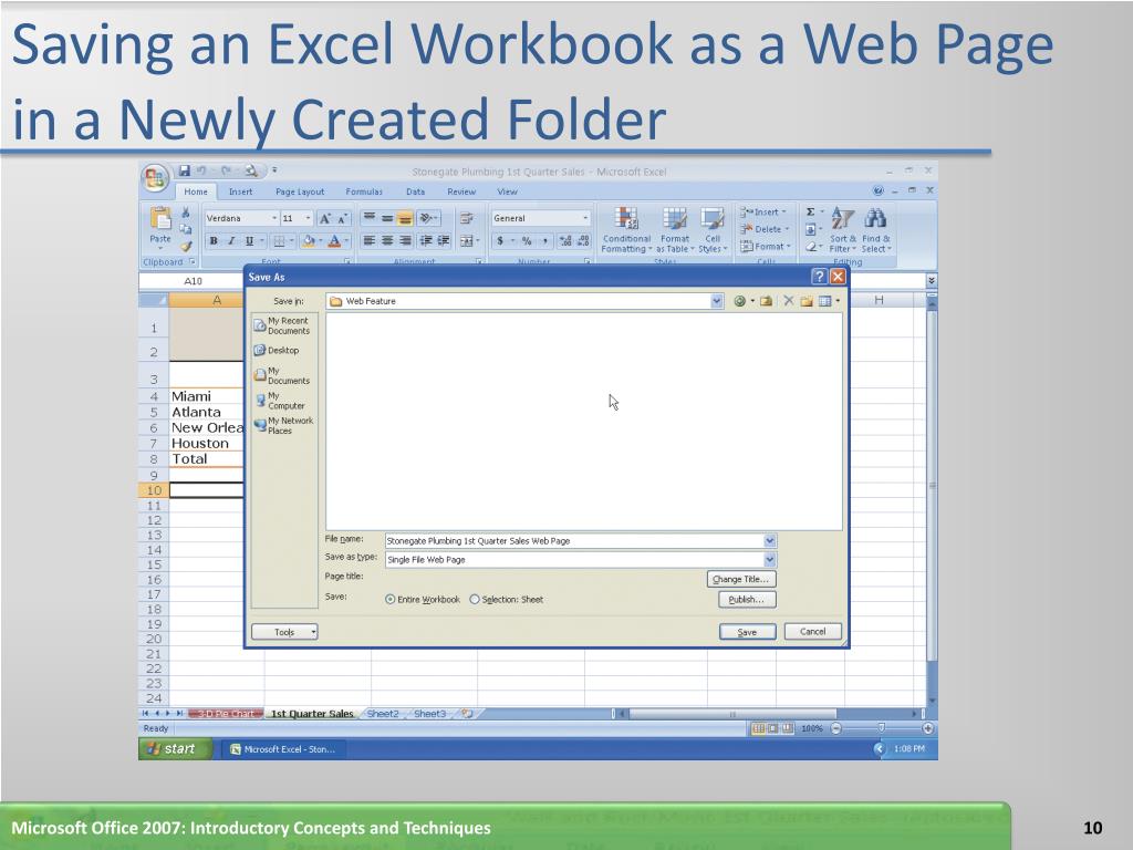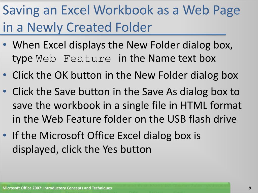 Saving an Excel Workbook as a Web Page in a Newly Created Folder Microsoft Office 2007: Introductory Concepts and Techniques