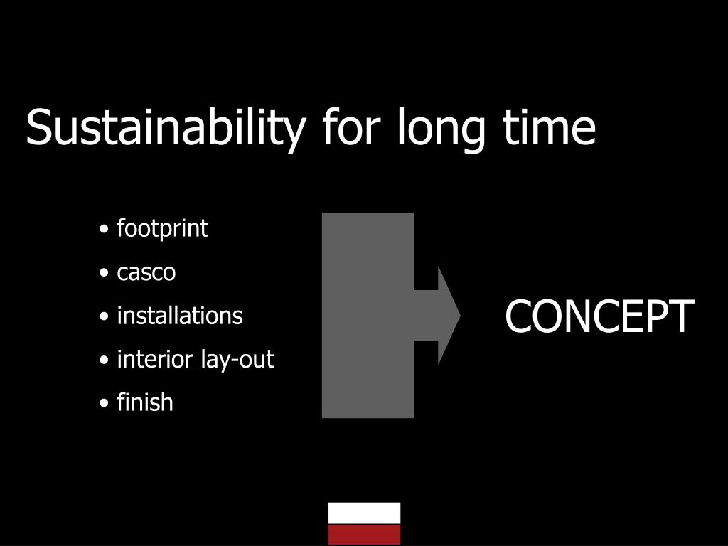 Sustainability for long time • footprint • casco • installations • interior lay-out • finish CONCEPT