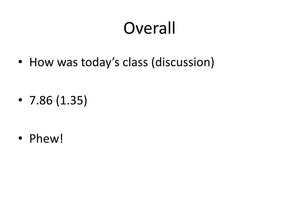 Overall • How was today’s class (discussion) • 7.86 (1.35) • Phew!