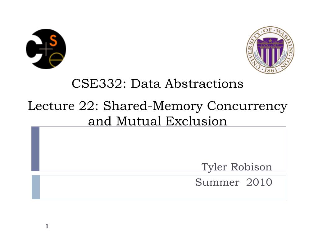 CSE332: Data AbstractionsLecture 22: Shared-Memory Concurrency and Mutual Exclusion Tyler Robison Summer 2010