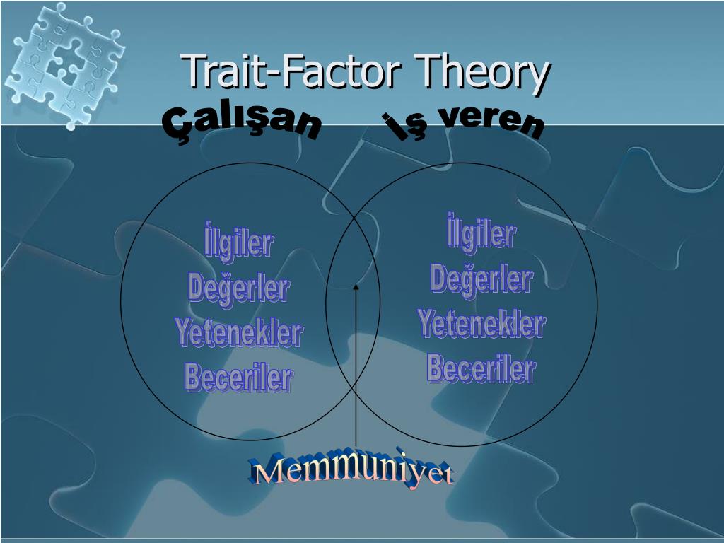 Trait-Factor Theory Çalışan İş veren İlgiler Değerler Yetenekler Beceriler İlgiler Değerler Yetenekler Beceriler Memmuniyet