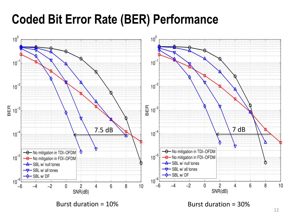 Coded Bit Error Rate (BER) Performance 7 dB 7.5 dB Burst duration = 10% Burst duration = 30%