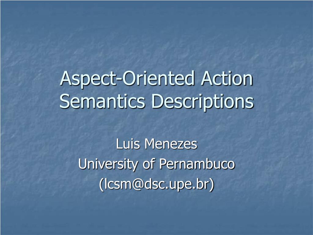 Aspect-Oriented Action Semantics Descriptions Luis Menezes University of Pernambuco (lcsm@dsc.upe.br)