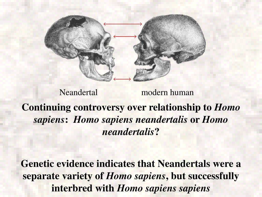 Neandertal modern human Continuing controversy over relationship to Homo sapiens: Homo sapiens neandertalis or Homo neandertalis? Genetic evidence indicates that Neandertals were a separate variety of Homo sapiens, but successfully interbred with Homo sapiens sapiens