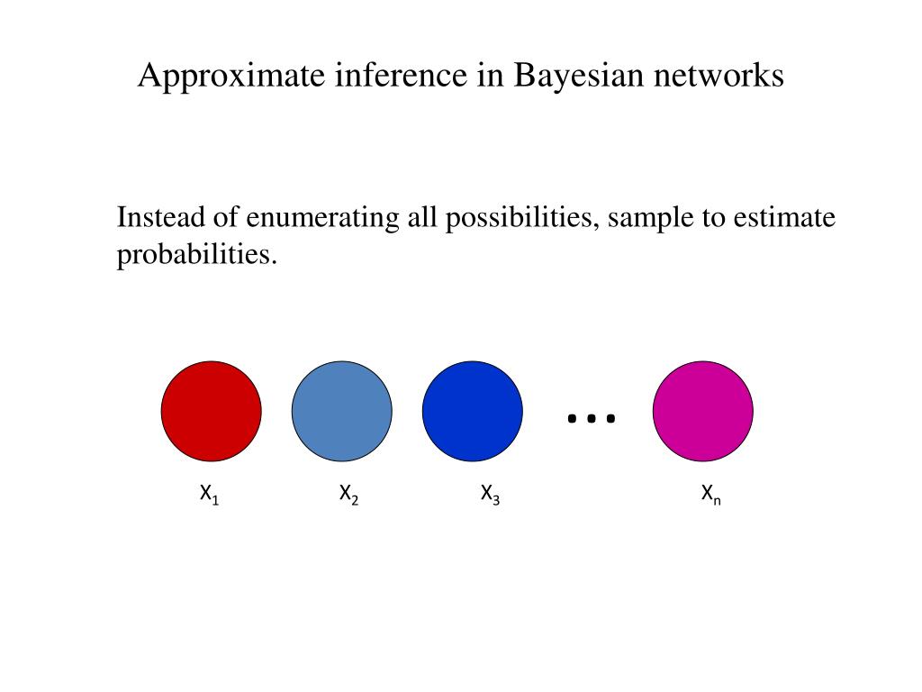 ... X1 X2X3Xn Approximate inference in Bayesian networks Instead of enumerating all possibilities, sample to estimate probabilities.