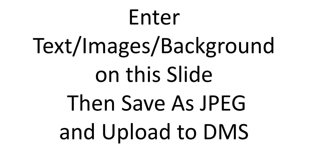 Enter Text/Images/Background on this Slide Then Save As JPEGand Upload to DMS