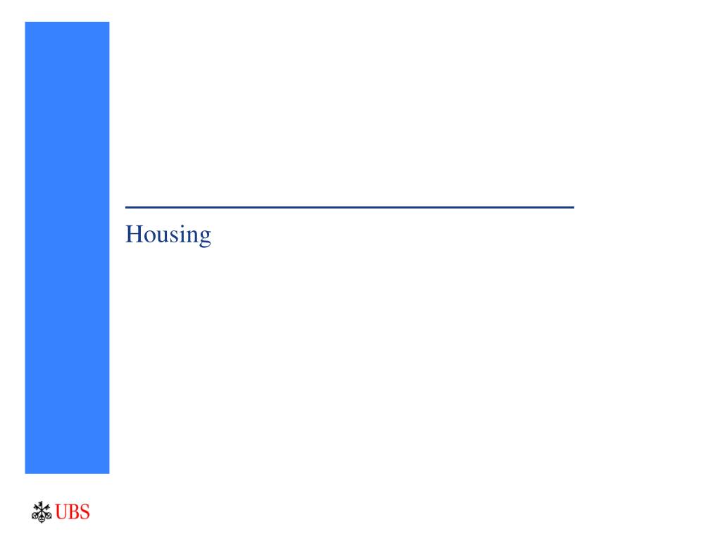 Housing’s indirect effects… …have been larger than usual in the current cycle, due to a surge in wealth as home prices have risen. Wealth has been tapped through home equity extraction (HEE). At least some of that extraction has likely been used to finance extra household spending. * Single-family only are available prior to 1999; ** UBS estimate of home equity extraction calculated as increase in residential mortgage debt minus all new residential investment other than home improvements *** Quarterly except latest. Source: Federal Reserve, Bureau of Economic Analysis, National Association of Realtors, OFHEO , and UBS