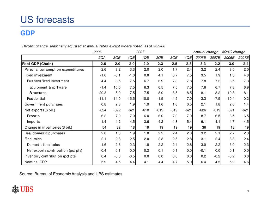 US forecasts GDP Source: Bureau of Economic Analysis and UBS estimates