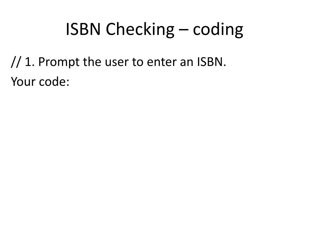 ISBN Checking – coding // 1. Prompt the user to enter an ISBN. Your code: