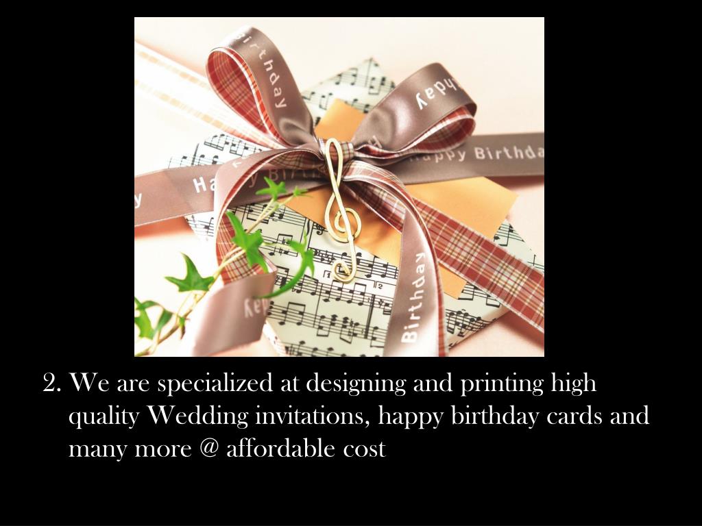 2. We are specialized at designing and printing high quality Wedding invitations, happy birthday cards and many more @ affordable cost