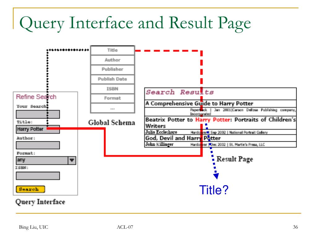 Query Interface and Result Page Title? Bing Liu, UIC ACL-07