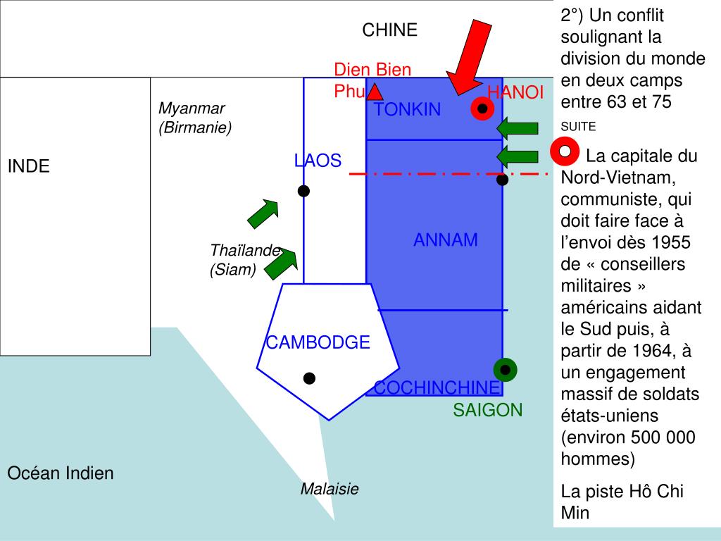 La Guerre du Vietnam. Une croisade Etats-Unienne pendant la Guerre Froide. situation. schématisation. CHINE. Myanmar (Birmanie). INDE. Mer de Chine méridionale. Thaïlande (Siam). Océan Indien. Malaisie. CHINE. Comptoir du GuangzhouWan. Myanmar (Birmanie). TONKIN. LAOS. INDE.