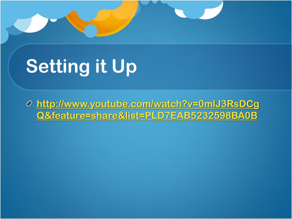 Setting it Up • http://www.youtube.com/watch?v=0mlJ3RsDCgQ&feature=share&list=PLD7EAB5232598BA0B