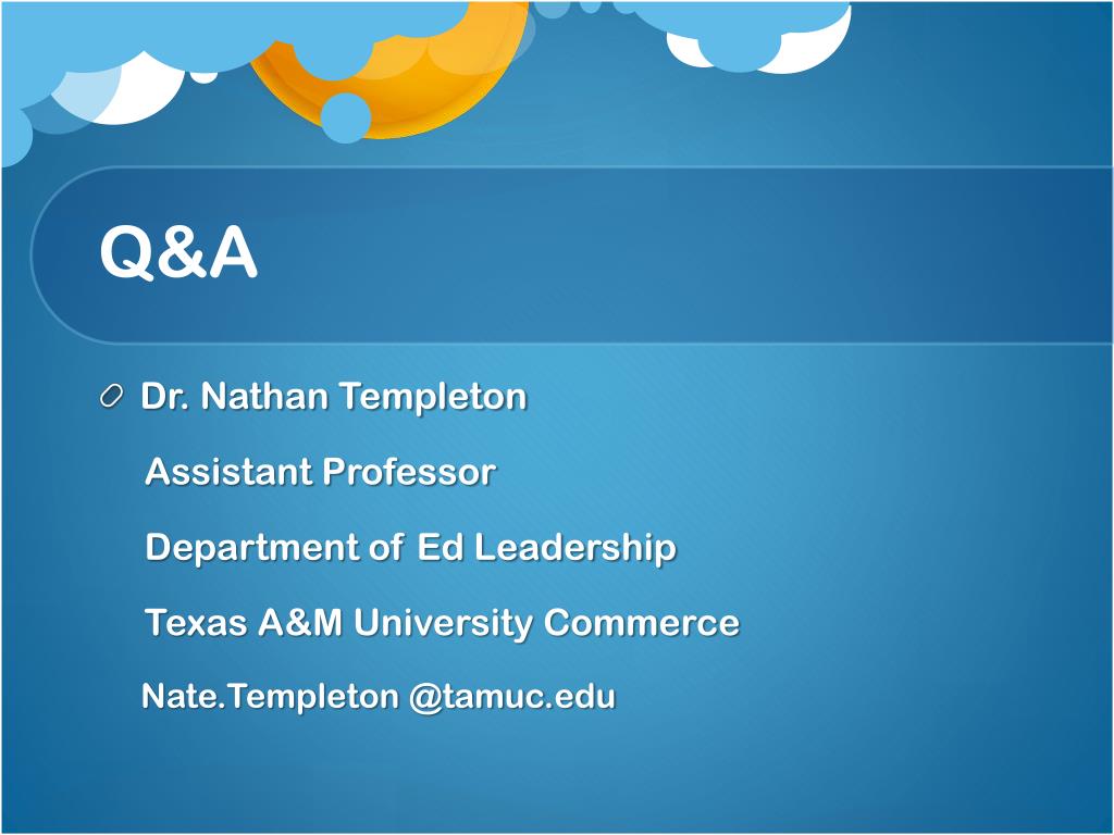 Q&A • Dr. Nathan Templeton Assistant Professor Department of Ed Leadership Texas A&M University Commerce Nate.Templeton @tamuc.edu