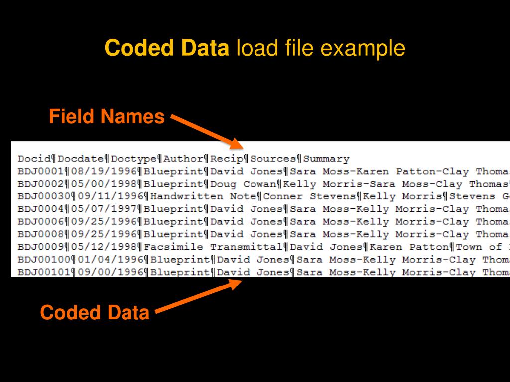 Coded Dataload file example Field Names Coded Data