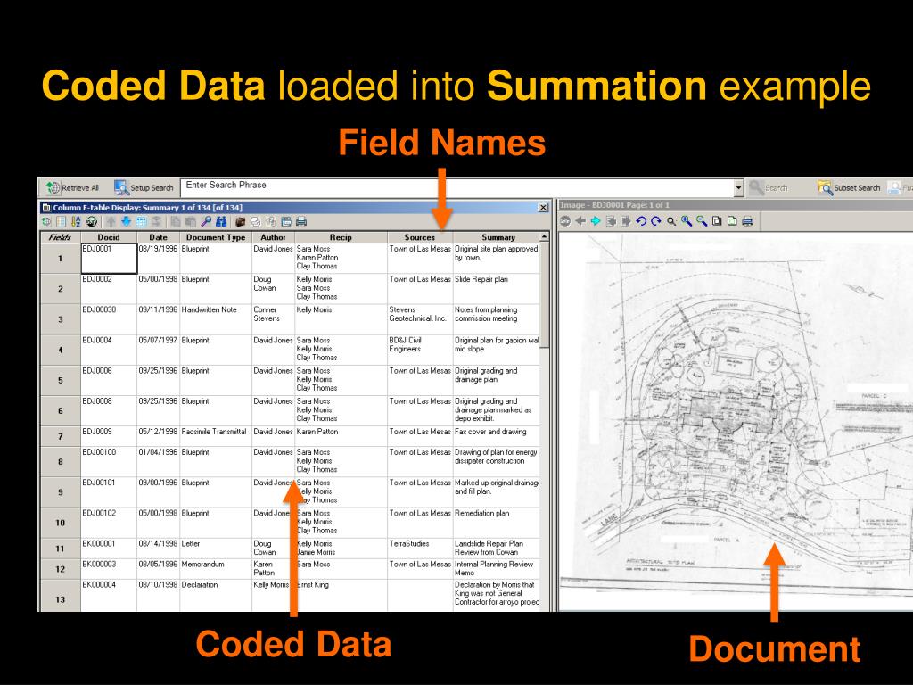 Coded Data loaded into Summation example Field Names Coded Data Document