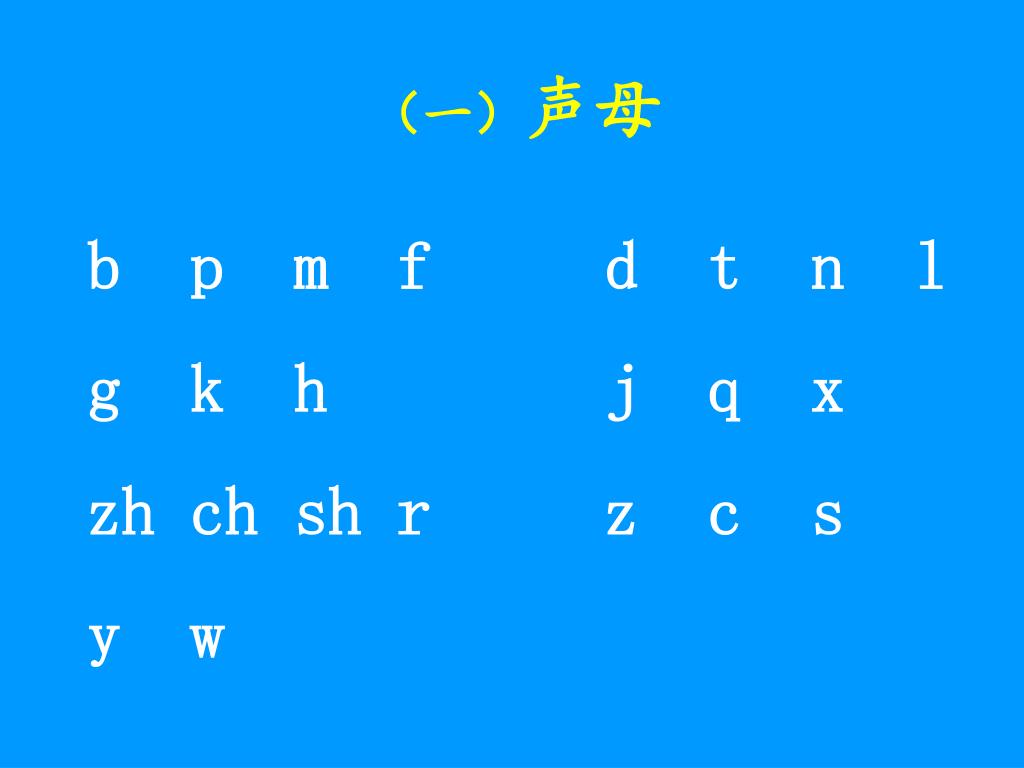(一)声母 b p m f d t n l g k h j q x zh ch sh r z c s y w