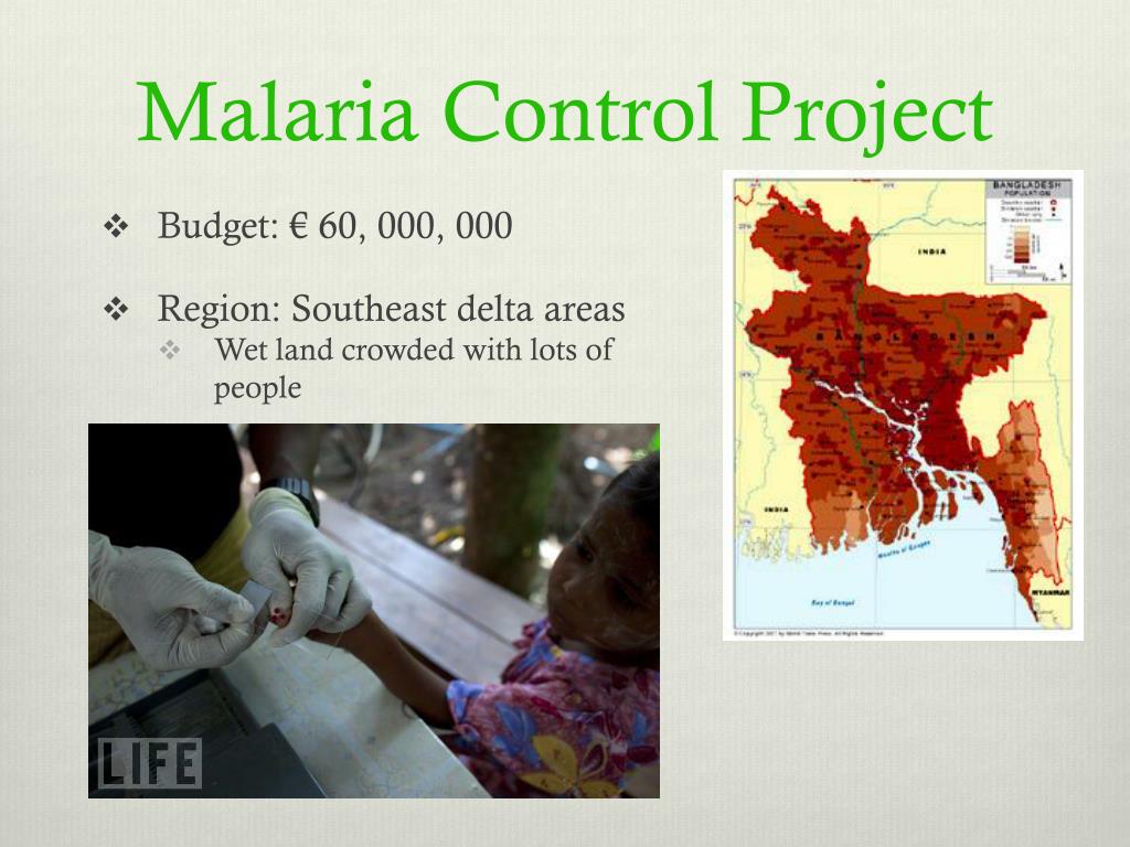 Malaria Control Project • Budget: € 60, 000, 000 • Region: Southeast delta areas • Wet land crowded with lots of people