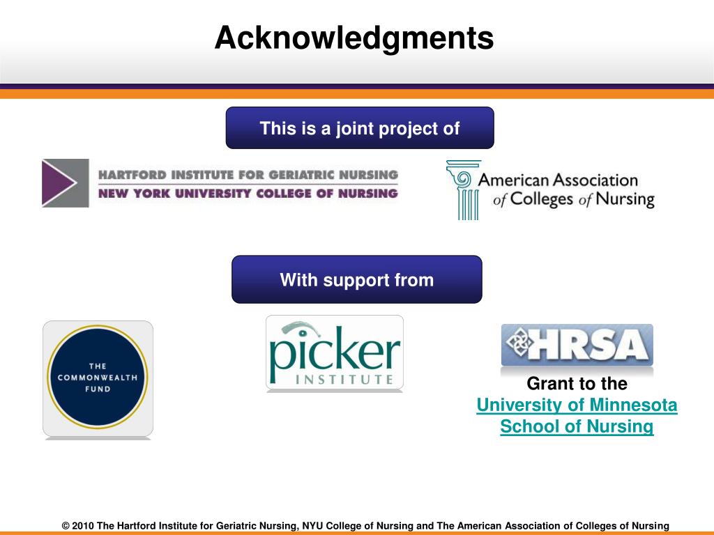 Acknowledgments This is a joint project of With support from Grant to the University of Minnesota School of Nursing