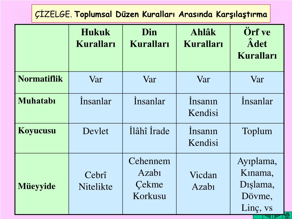 ÇİZELGE. Toplumsal Düzen Kuralları Arasında Karşılaştırma