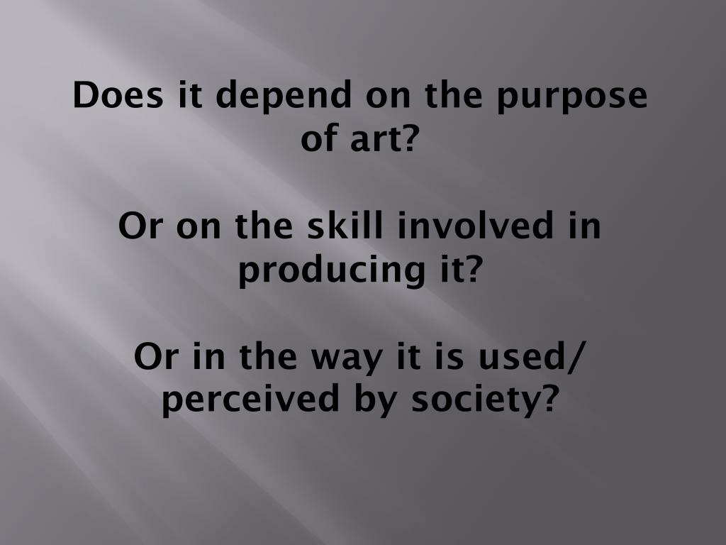 Does it depend on the purpose of art?Or on the skill involved in producing it?Or in the way it is used/ perceived by society?
