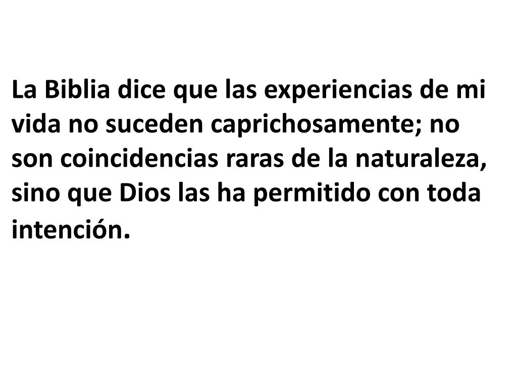 La Biblia dice que las experiencias de mi vida no suceden caprichosamente; no son coincidencias raras de la naturaleza, sino que Dios las ha permitido con toda intención.