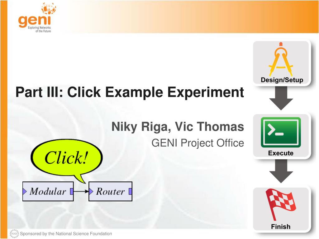 Part III: Click Example Experiment Niky Riga, Vic Thomas GENI Project Office