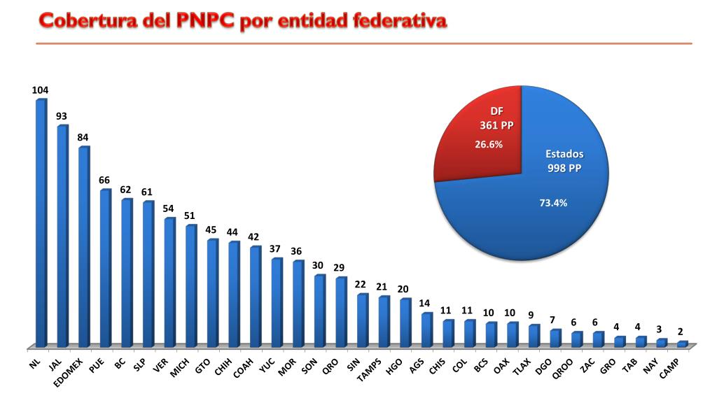 Cobertura del PNPC por entidad federativa DF 361 PP Estados 998 PP