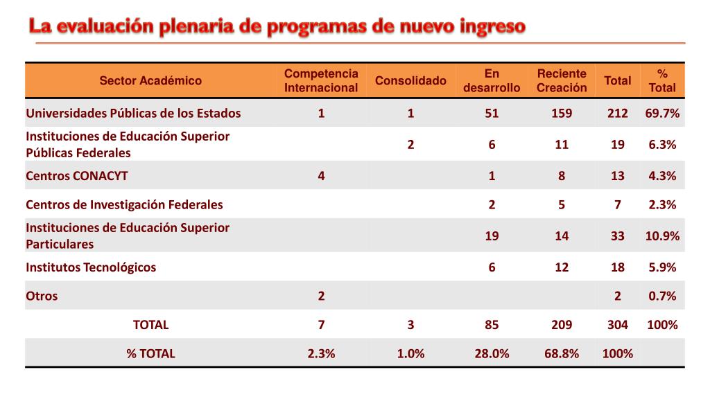 La evaluación plenaria de programas de nuevo ingreso y renovación por grado académico