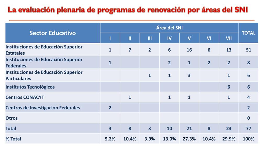 La evaluación plenaria de programas de renovación por áreas del SNI