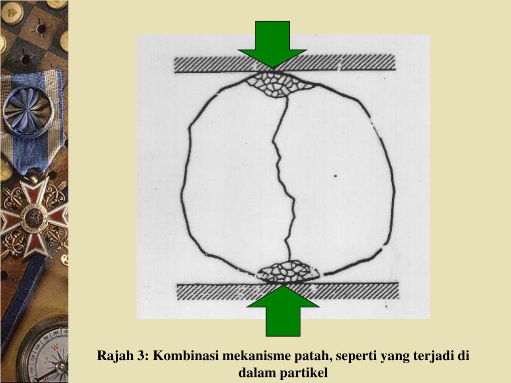 Rajah 3: Kombinasi mekanisme patah, seperti yang terjadi di dalam partikel