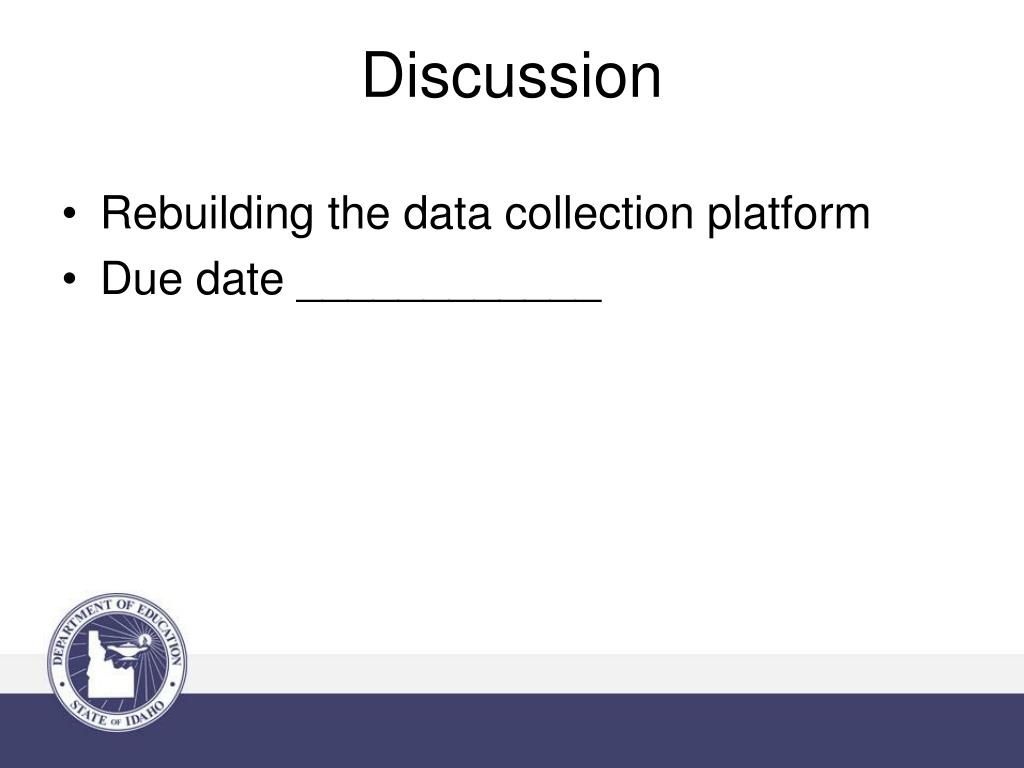 Discussion • Rebuilding the data collection platform • Due date ____________