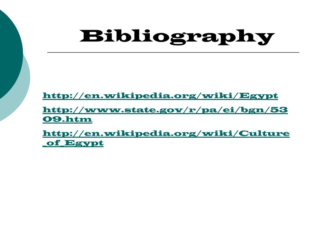 Bibliography http://en.wikipedia.org/wiki/Egypt http://www.state.gov/r/pa/ei/bgn/5309.htm http://en.wikipedia.org/wiki/Culture_of_Egypt